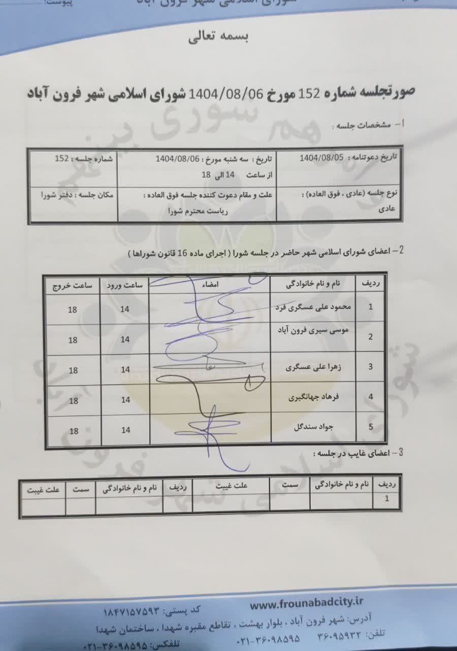 صورتجلسه شماره 152